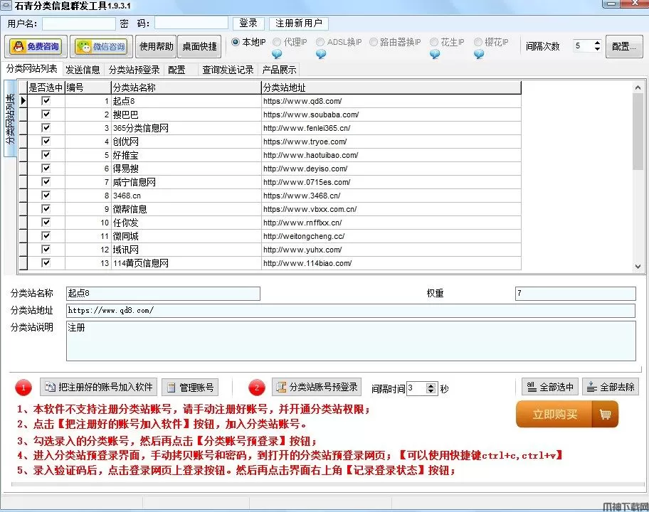石青分类信息工具官方版是一款全自动分类信息站群发软件,独创的验证码识别方式,快速发布信息,建立SEO外部链接。本软件是一款高效的分类信息群发工具,可以对国内大型分类,赶集,58等等站做群发,以及大批量的普通分类信息站做全 自动验证码识别发送。客户只要录入好注册帐号,密码,以及群发内容,就可以轻点鼠标实现信息的网络覆盖。本站提供的软件石青分类信息工为绿色版,不需要安装,且软件占用的磁盘空间较小,双击可执行文件即可直接进入使用,安全无毒、无恶意代码,请放心使用,有需要的朋友赶快下载试试吧!