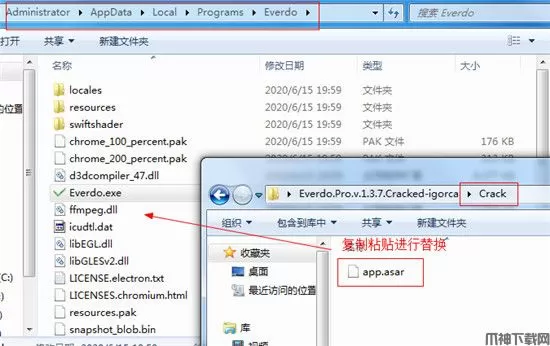 5、将将Crack文件夹下的“app.asar”文件复制到程序安装目录中粘贴