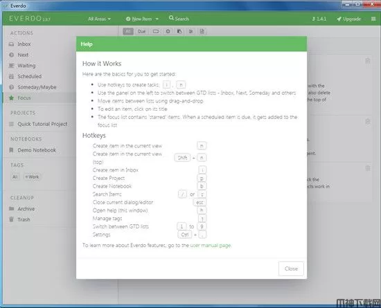 Everdo在很大程度上依靠键盘快捷键来实现简单而低摩擦的用户体验