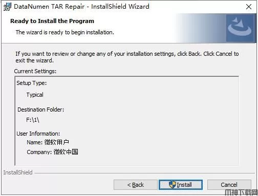 安装向导默认设置的软件默认安装路径为C:\Program Files (x86)\DataNumen\DataNumen TAR Repair