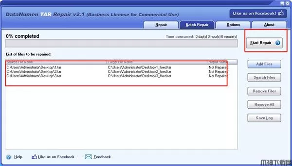 5、添加多个需要恢复的tar添加到软件,点击start repair按钮就可以开始执行修复