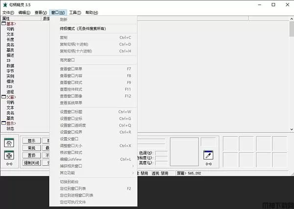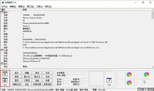 句柄精灵官方版是一个窗口辅助工具,可以用于获得窗口各种信息和属性。其中包括窗口类,大小,样式,状态,字体等相关内容。此外,它可以控制一个窗口的状态,比如显示或隐藏,置顶,透明,更改样式等等。可查看窗口和控件句柄、类名、标题、风格等信息。可获取窗口的类名和Title,可向窗口发送文字,可控制窗口状态,如显示、隐藏、置顶、关闭、终止等,可以突破灰色的按钮。可以用来修改窗口的样式信息,如是否可调整大小、是否可最大化,是否有标题栏等等,不过只能在内存中修改。非常强大的一款软件,可以让你很方便查看各种句柄,浏览句柄。省去很多繁琐的操作,节约你的时间。有需要的用户可以下载体验!