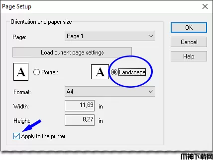 1、要更改页面方向,请选择菜单文件|页面设置…并在打开的对话框中将方向设置为横向。还要确定“应用到打印机”勾号处于激活状态