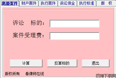 人民法院诉讼费计算器是一款目前网上最火的人民法院诉讼费计算工具。界面简洁,软件小巧,操作便捷。人民法院诉讼费计算器根据国务院《诉讼费用交纳办法》编制(适用于民商事诉讼案件)执行2007年4月1日诉讼费计算标准。诉讼费主要包括案件受理费、申请费和其他诉讼费用三种。法院决定受理民事案件时,起诉方当事人应当按照法律规定向法院缴纳一定的费用,这就是案件受理费。案件受理费可分为财产案件受理费和非财产案件受理费。含离婚诉讼费计算、财产诉讼费计算、申请执行费计算、财产保全费计算。人民法院诉讼费计算器可以根据起诉金额快速计算出需要的诉讼费,支持离婚案件、财产案件、执行案件、诉讼保全四种类别的诉讼费计算,为需要进行民事案件诉讼的用户提供了诉讼费的参考信息。根据最新的诉讼费用收费标准制作,用户无需重复查询对比自己应交金额,只需在计算器上输入相关数据软件即可自动帮你算出相关费用,同时还支持反计算哦。人民法院诉讼费计算器是款便民软件。免安装,即下即用。需要的朋友快来3322网站下载使用吧。