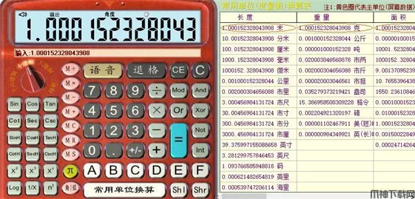 1、支持16进制内所有进制自由转换。 2、支持语音播报。 3、拥有常用单位换算。 4、支持各种常用公式。 5、基本加减乘除功能。