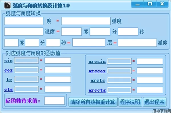 弧度和角度换算计算器是一款简单的弧度角度换算工具。我们知道数学里的弧度和角度是可以互相转换的,有时候需要用到弧度,有时候需要用到角度,计算情况不同选择适合的单位是非常必要的,小编为大家提供的这款弧度和角度的换算器,它能快速地进行弧度和角度之间的转换,让你在学习过程中省去一些步骤,节约时间。另外该转换器还可以显示对应弧度和角度的函数值,反函数,为数学计算提供便利。