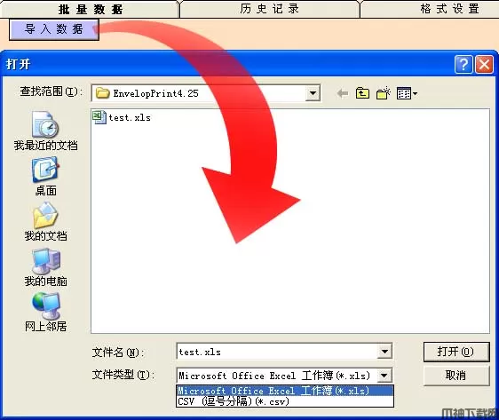 本软件可从EXCEL表格文件导入数据进行批量打印,支持的格式为XLS及CSV格式,如果是EXCEL兼容的其他格式,可以先用EXCEL软件转换成这两种格式之一。