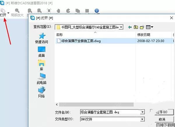 2、之后,打开斯维尔CAD快速看图工具,点击【打开】,选择需要打开的CAD图纸即可