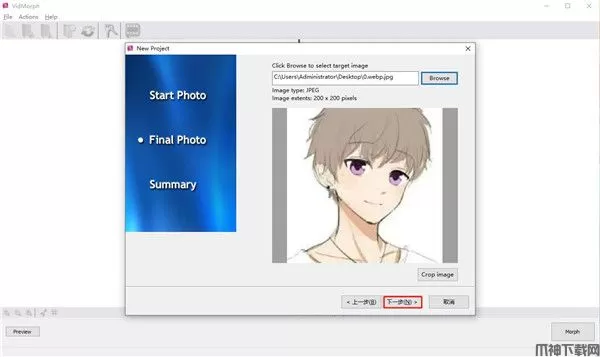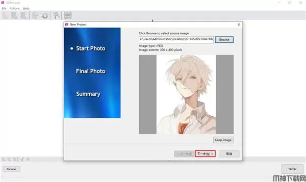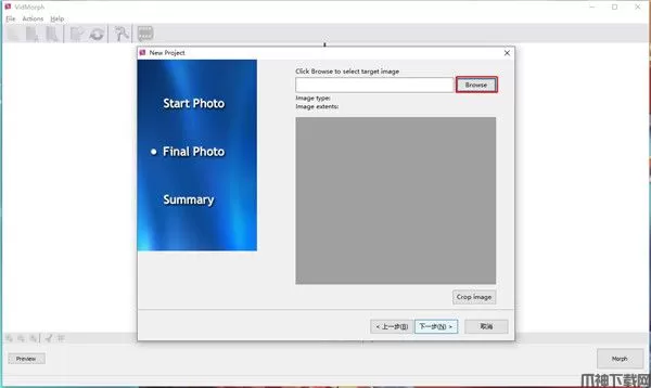 1、下载软件压缩包,双击打开“VidMorph”软件,点击Browse添加第一张图片