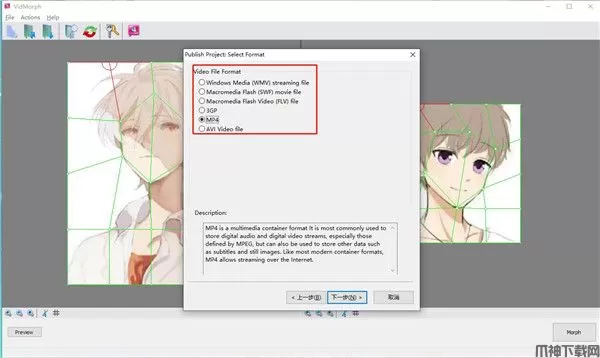 VidMorph是一款多功能支持将照片和图像变形为有趣的动画工具,软件会用户感觉像一个艺术家和一个喜剧演员都集于一身,你的第一个变形,电影变形创建更逼真的转换和使用一个专业的视频工作室,但现在你可以混合在您的家用电脑的视频变形和照片变形。VidMorph可以创建不同的项目,通过软件可以实现人们成长过程中的外观,将人们变成动物和怪物,显示动画产品更改,连接不同的电影和视频拍摄,还可以支持大多数最受欢迎的图像类型作为输入JPEG/GIF/PNG等;VidMorph易于使用的软件,只需要选择两个要变形的图片即可,要创建图片,可以使用变形功能,转换后,您需要按变形按钮,选择输出视频或Flash格式,然后您将看到有趣的变形动画,有兴趣的小伙伴快来下载体验吧!