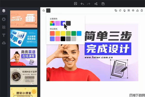 1、砍柴网:Fotor针对国内用户的需求,根据不同应用场景与尺寸要求,制作出多种精美的模板,让用户可以通过简单的修改文字就能快速完成设计。