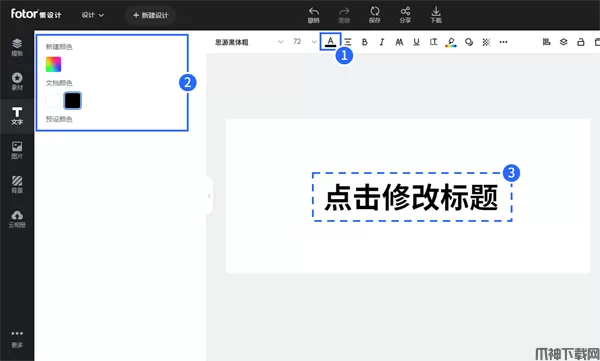 选中文字→点击画布左上角字体颜色选项→在左侧栏中选择颜色→应用到文字即可