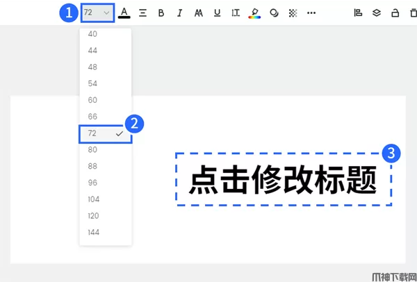 选中文字→点击画布左上角字号选项→在下拉框中选择字号→应用到文字即可