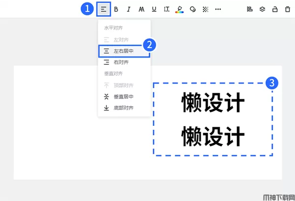选中文字→点击画布左上角对齐选项→在下拉框中选择对齐方式→应用到文字即可