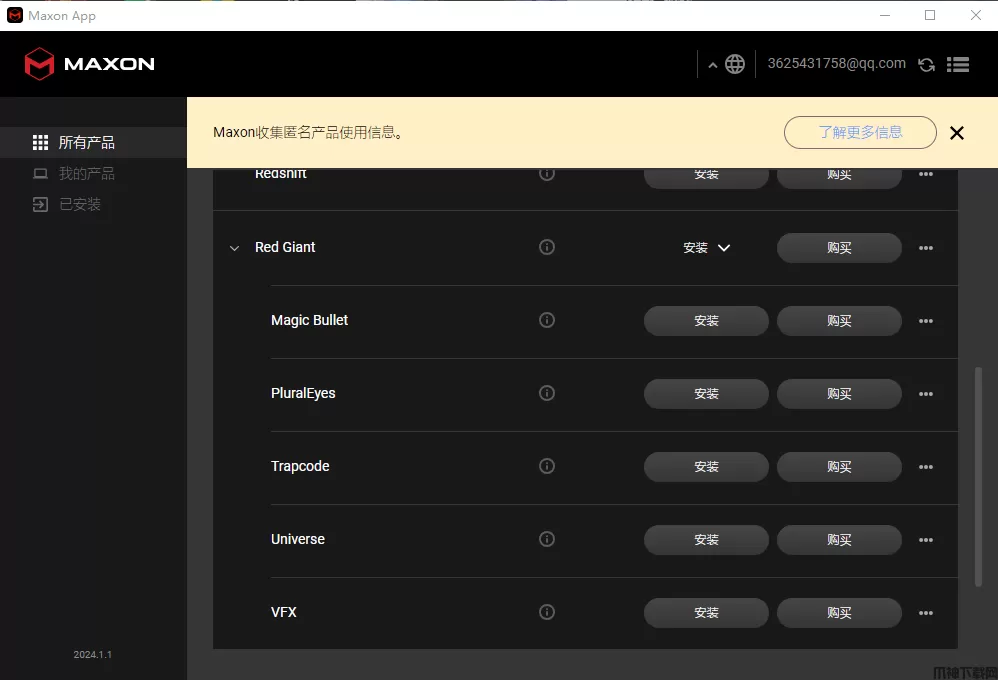 1、再本站下载压缩文件解压到本地,双击击Maxon安装程序进行安装,在Maxon中安装Red Giant Universe即可。