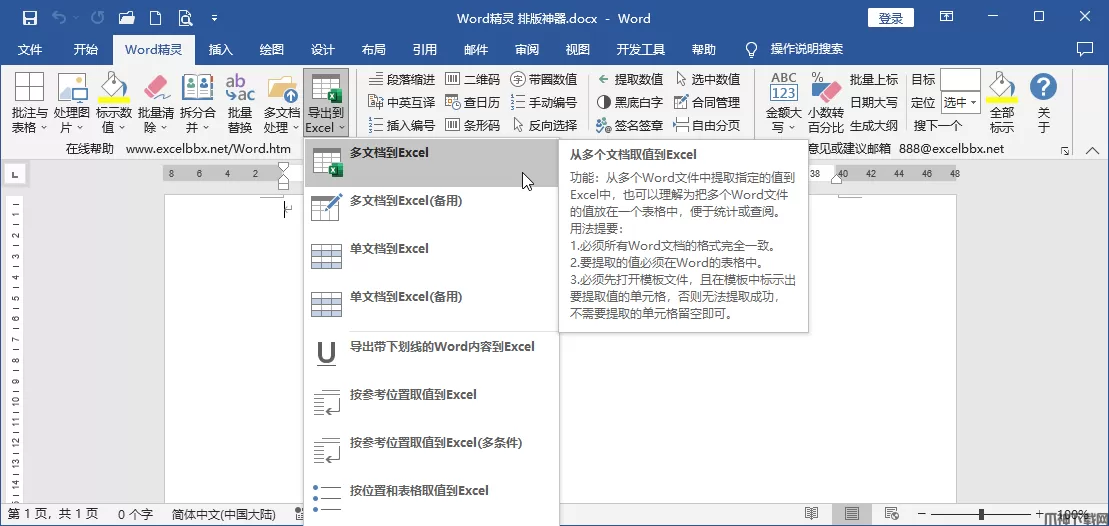 Word精灵官方版是一款专为Office内的Word所打造的插件工具,它内置了121个功能实用的工具,比如可以批量合并文档、批量拆分文档、批量导出Word数据到Excel、批量转数据值转换成大写金额、批量插入图片、批量另存图片、批量统一图片