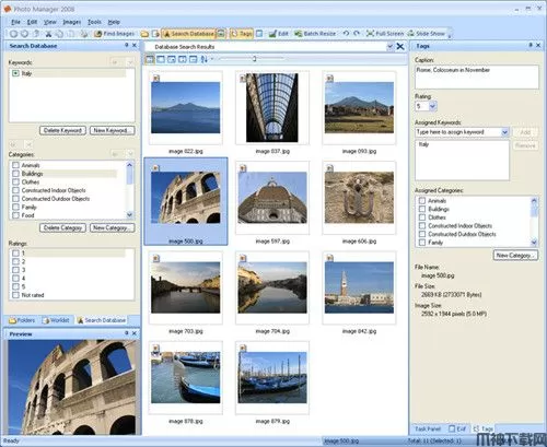 搜索 在数据库搜索视图中按关键字、评级和类别搜索数据库中的图像。在一秒钟内选择所需的图像并管理结果:预览、编辑、打印或复制照片。