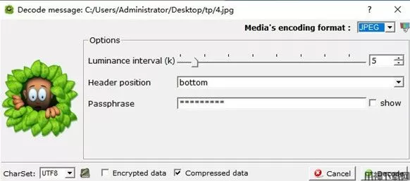 5、之后若想查看此类信息,可需打开此软件并导入此图片,再点击“Decode”