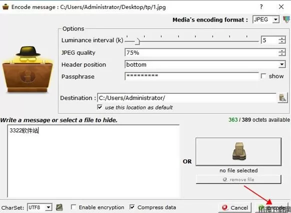4、完成一切基本属性的设置,点击“Encode”即可生成藏有隐藏信息的图片