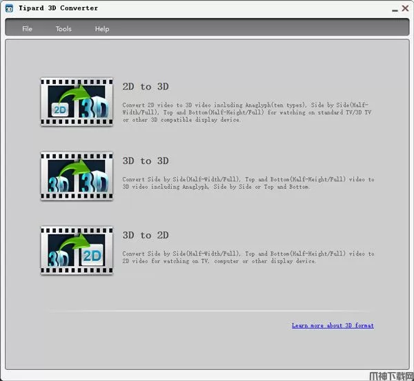 Tipard 3D Converter是一款非常专业的多功能3D转换软件,软件能够简单易用的帮助用户将3D视频转换为2D,将任何2D电影转换为3D效果或将3D视频轻松转换为Windows的一种,软件拥有多种编辑功能帮助您能够正常完美的输出视频;这款软件转换的速度也是一绝,关键是速度快的同时质量也没有落下,它提供了许多选项供您选择,不仅涉及配置文件,还涉及可调节的效果,长度,音轨甚至字幕;不仅如此,为了方便您的观影体验,软件还拥有几种输出3D格式供您选择,包括红色/青色浮雕,并排全角或半角宽度,顶部和底部全角或半角高度。有了这款软件你就能够在家看3D大片,再也不需要去电影院话冤枉钱了;软件支持市面上激活所有的视频格式,兼容性非常的强,而且软件的一切操作都是建立在普通用户的基础上,所以您不必担心软件的使用难度,上手即用,非常的方便,超高的转换速度,高质量的视频效果,全面的功能,简单的操作和用户友好的界面,所有这些人性化的设计因素都将为您带来最美妙的用户体验。