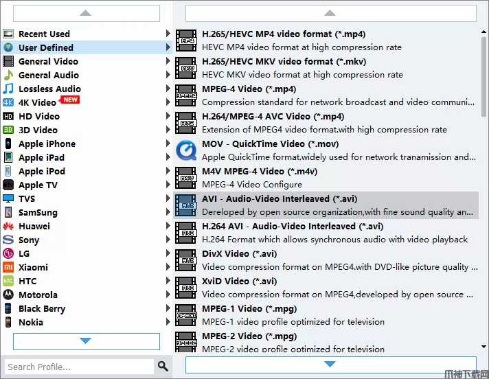 这款4K文件转换器可轻松将视频,电影,音乐转换为iPhone 11/11 Pro / 11 Pro Max / XS / XS Max / XR / X / 8/8 Plus / 7/7 Plus / 6s / 6s Plus / 6/6 Plus / SE / 5s / 5c,iPad,iPad Pro / mini 4 / mini 3 / mini 2 / mini / Air 2 / Air,新iPad Pro,iPod touch /纳米,Apple TV 4K,Apple TV,Samsung Galaxy Note 4 / S6,HTC M8,Nexus 6,Sony Xperia Z3,MOTO X,LG G3,Galaxy Tab,Kindle Fire和其他Android设备,诺基亚Lumia 930/1520/1320/1020,Surface Pro,PS3,PS4,XBox和更多流行设备。它还会将您的4K文件转换为视频编辑软件(例如Sony Vegas,Adobe Premiere Pro,Windows Movie Maker等)的兼容视频格式,而不会造成质量损失。