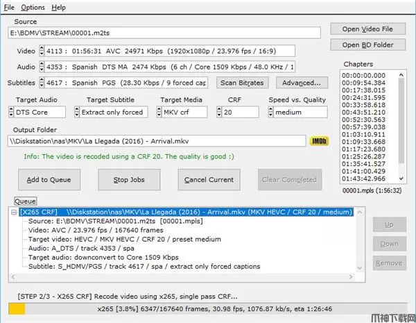 18、MVC编码:缩小3D Blu Ray来bd25 / bd9保持3D MVC格式的能力(英特尔快速同步编码器)。编码的能力,MKV的使用x265/HEVC编解码器