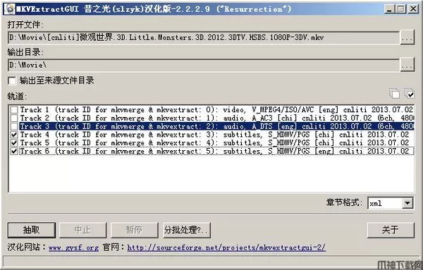 2).再用MKVtoolnix(CN)-1.6.4.1提取你想要的文件即可。
