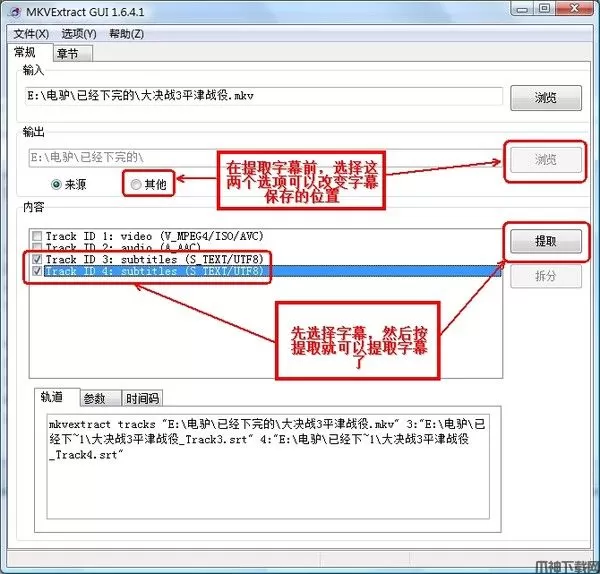 1、先用MKVtoolnix提取字幕,方法见下图: