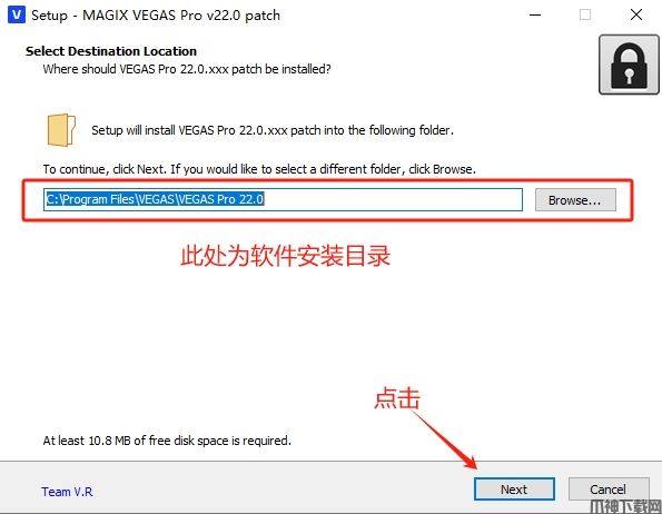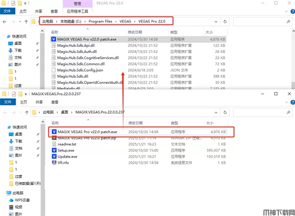 9、随后将补丁MAGIX VEGAS Pro v22.0 patch.exe复制到软件安装目录,如图所示【默认安装路径:C:\Program Files\VEGAS\VEGAS Pro 22.0】;