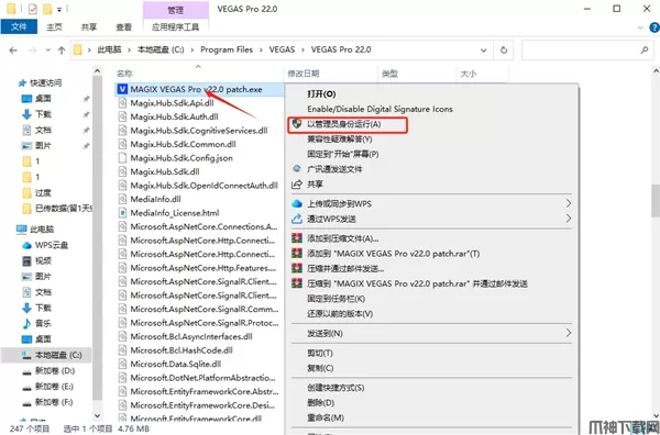 10、紧接着以管理员身份运行“MAGIX VEGAS Pro v22.0 patch.exe”;