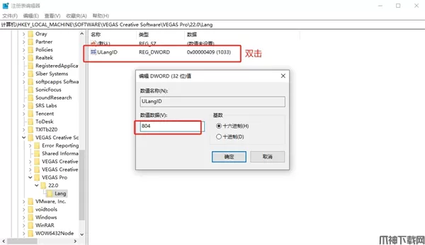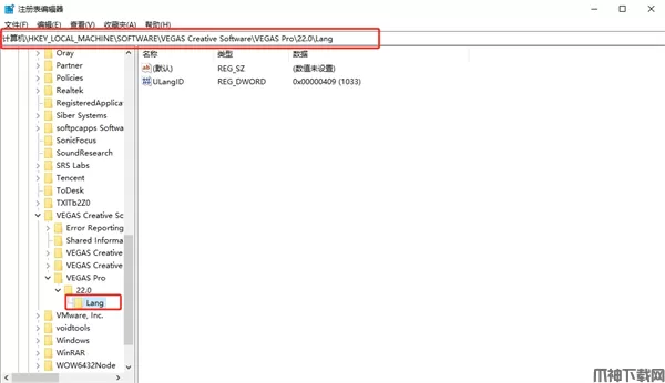 【选择计算机\HKEY_LOCAL_MACHINE\SOFTWARE\VEGAS Creative Software\VEGAS Pro\22.0\Lang】;