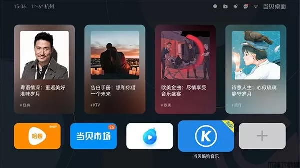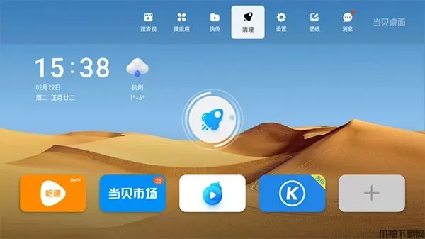 桌面初始预装仅有四个应用,UI界面视觉上干净简单且功能全面,桌面首页有天气、快捷应用、和快捷导航栏,没有广告的当贝桌面4.0让体验感再升级,相比之前版本的当贝桌面,软件启动时间提升了20%