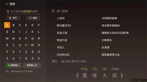 搜应用功能跳转至当贝市场搜索页面,可以在此下载更多好玩好用的应用,内置上千款软件可以下载