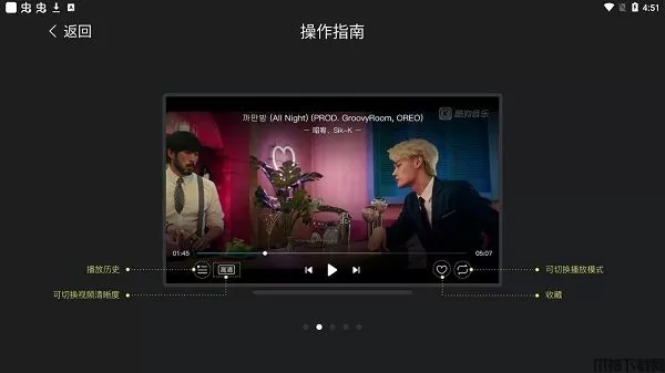 在这里可以查阅播放历史,也可以切换视频清晰度;在右侧的功能菜单中还可以切换播放模式,和进行收藏。