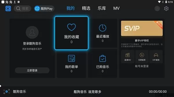 酷狗音乐tv版是由酷狗针对智能电视、电视盒子等Android TV平台打造的音乐客户端,对于该产品的使用,想必喜欢听音乐的用户非常熟悉了,其中内置海量曲库的正版音乐,不仅音质超棒,而且还有每日精选、每日推荐和不同类别的音乐整理,打开曲库可以根据自己的喜好。