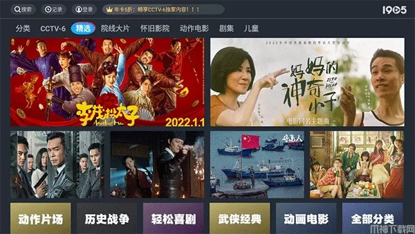 2、新增“院线大片”、“怀旧影院”、“动作电影”频道,满足不同人群不同需求