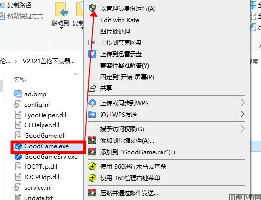 3、鼠标右键【GoodGame】以管理员身份运行。