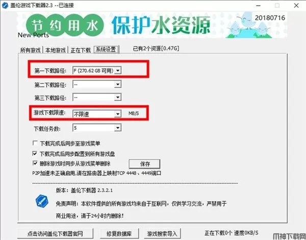 4、点击【系统设置】选择好下载路线保存,建议不要选择系统C盘,可以选择D盘,E盘等。
