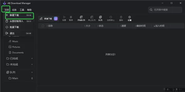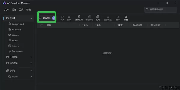 1、进入AB Download Manager软件中,点击【新建下载】。