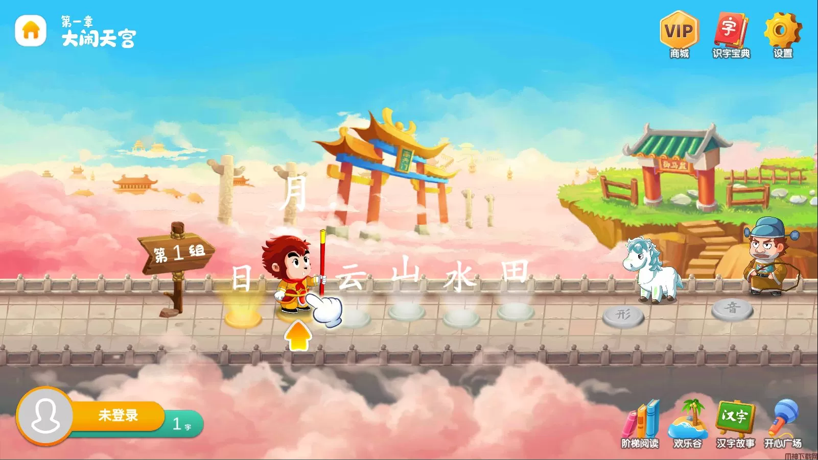 3、以西游记为故事背景、15大场景、120多个识字游戏、1200个识字动画;