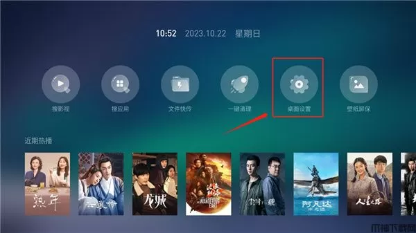 1、用户进入该应用之后,下按出现新界面,在该界面选择“桌面设置”按钮。