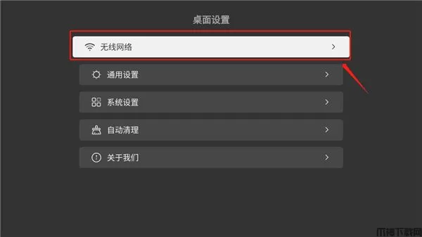 1、在软件界面选择“设置”按钮,在“桌面设置”中选择“无线网络”功能。