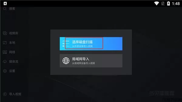 2、里面为用户提供了选择磁盘扫描和局域网导入,我们先点击磁盘扫描;