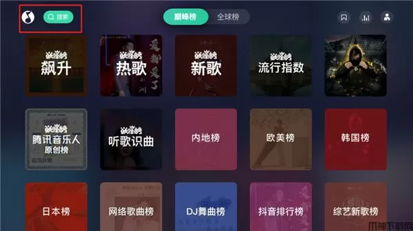 1、在本站免费下载qq音乐tv版,打开后可以看到“搜索”框。
