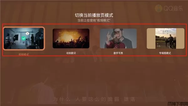 6、还可以选择“播放页模式”,其中包括:视频模式、动效歌词、歌手写真、专辑图模式。