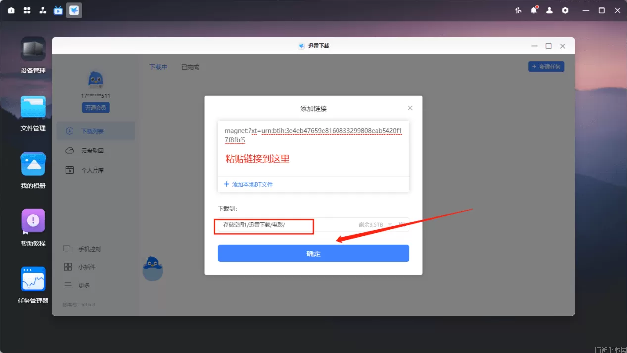 将影片下载链接粘贴到迅雷下载或离线下载中。(可以去社区里找下小伙伴们分享的资源链接)