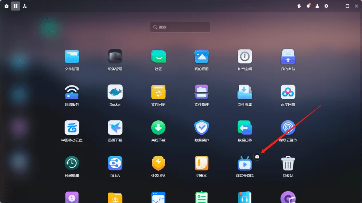 找到绿联云影院,可以点击这个小加号把它添加到绿联云的桌面上,方便之后直接从桌面进入。
