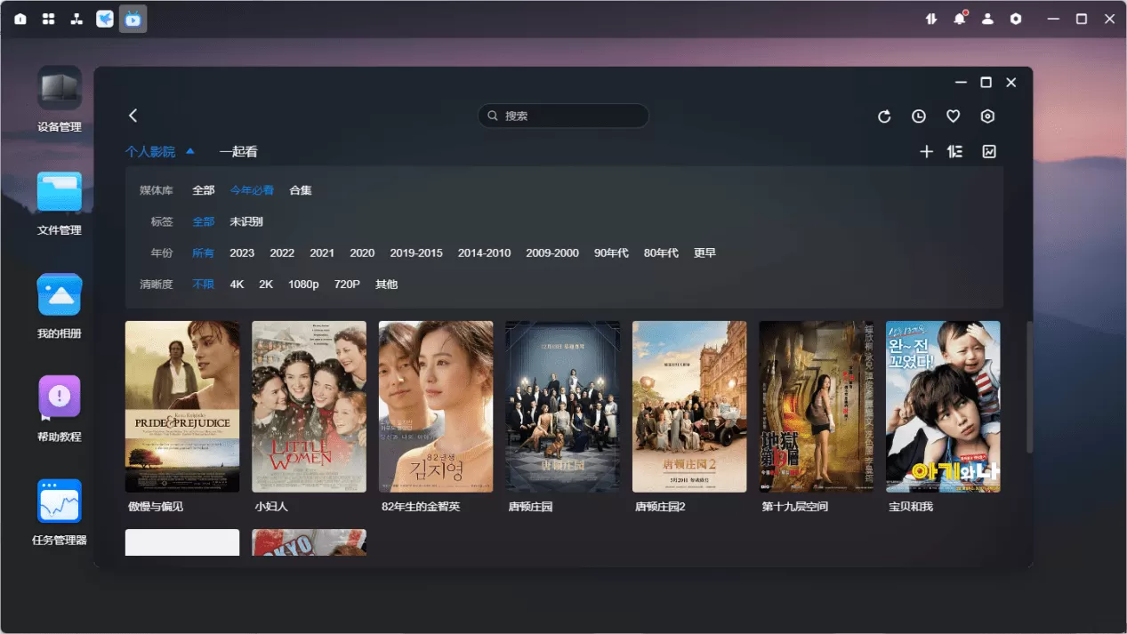 导入影片之后,就可以自动识别出海报墙,绿联私有云可以将影片根据时间自动分类,可以开始体验私人影院的乐趣了。