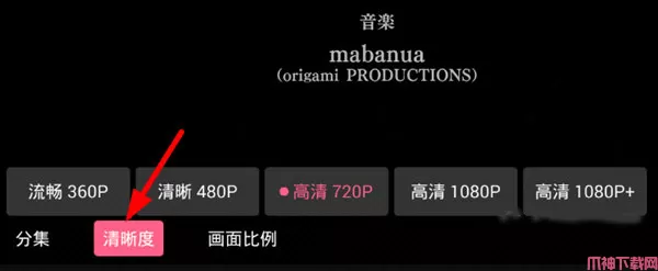 首先我们进入播放页面,然后通过按电视遥控板的方向键下,可以调出功能列表,从列表里选择“清晰度”的选项,就能够调整视频当前清晰度了。
