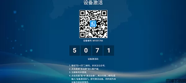 1、用户首先将软件在电视上安装成功,然后打开软件会提示用户扫码关注公众号进行激活